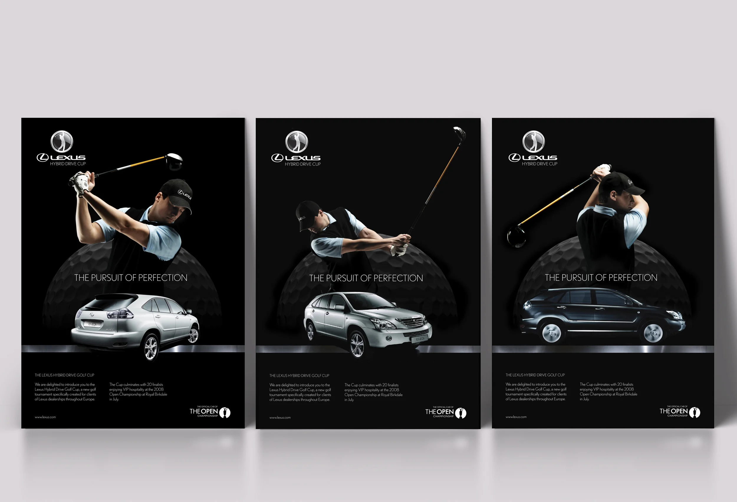 Lexus has long been a supporter of the Open Golf Championship. Their Hybrid Drive Golf Cup being a lead up competition in itself, designed to be support competition to the Open. Customers could apply through their local dealerships to enter the competition through the Pursuit of Perfection campaign. Branding, Art Direction and concept design were produced to reflect the precision and attention to detail of Lexus as a brand and Golf as a sport.
